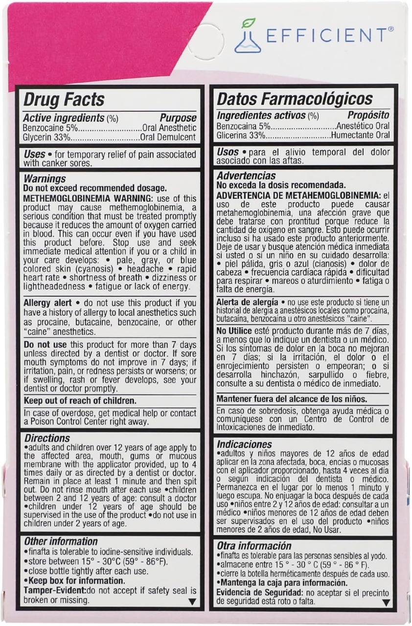 The Finafta Liquid Anesthetic provides a convenient and comprehensive solution for restoring comfort to your mouth, offering instant pain relief, tissue protection, and healing capabilities in a user-friendly bottle.